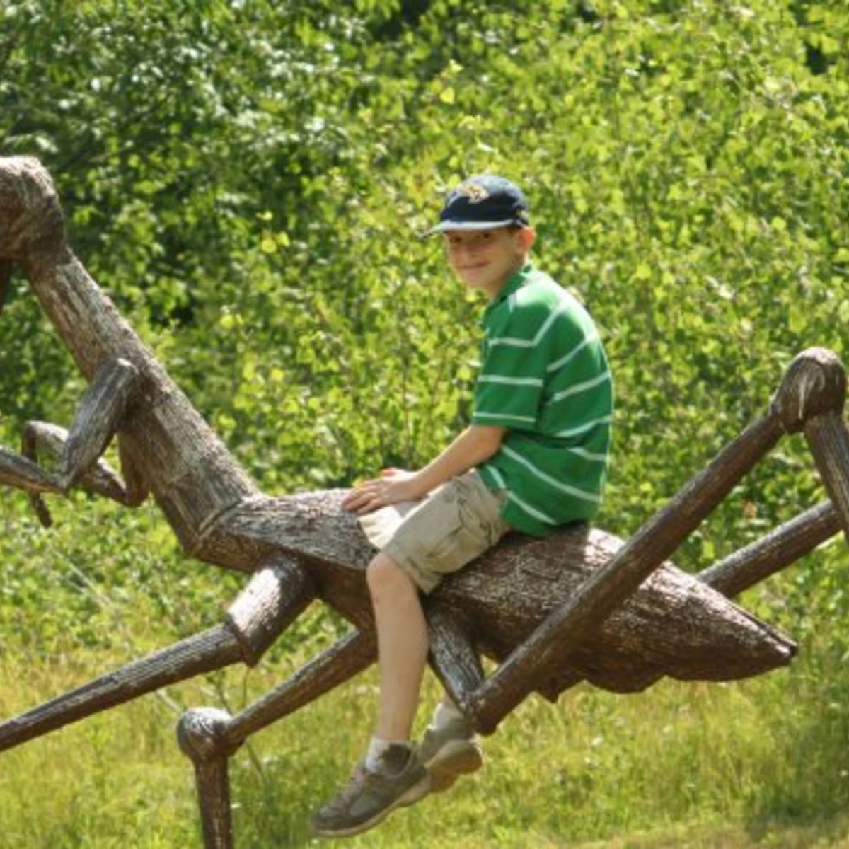 - Boy on praying mantis sculpture at Griffis Sculpture Park | Griffis Sculpture Park |
