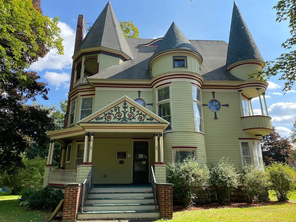 The first floor has heavy, beautifully carved woodwork, fireplaces, and parquet floors. All rooms but the entry to the kitchen are newly papered in the design of the 1895 era. The second floor has three rooms in use; two are research libraries and the other contains a fabulous display of knives made at a local factory. The third floor "ballroom", once the scene of parties and dances, is now being used for storage, and the cellar is unused except for the furnace.