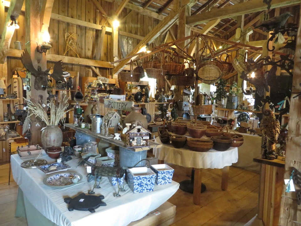 A gift shop specializing in the sale of local Amish wares and unique country gifts, including a large selection of moose, bear, chicken, cow and pig items for sale.