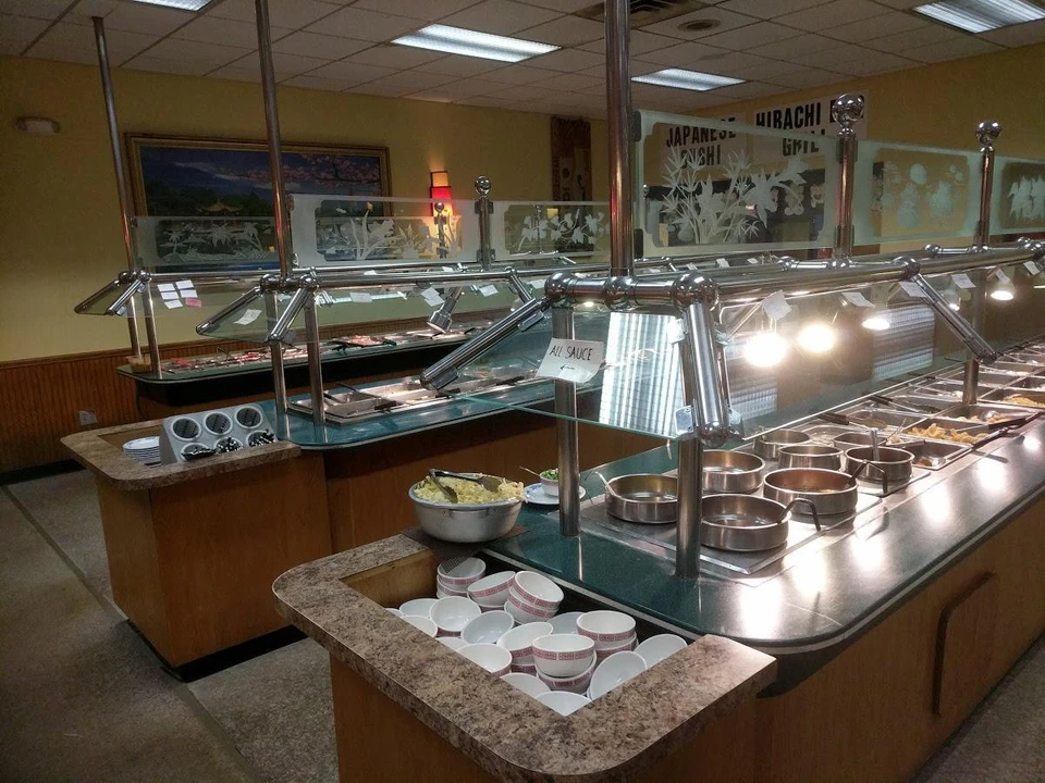 A buffet with Chinese, Japanese, and American cuisine.