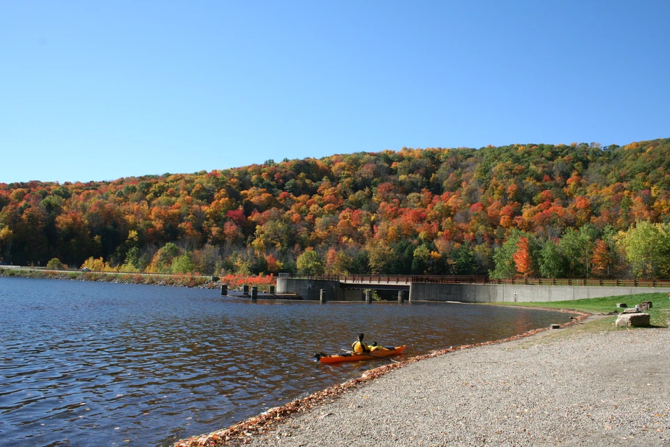 - Kayaks on beach at Allegany State Park | Quaker Lake Launch & Fishing Dock | Autumn, Spring, Summer |