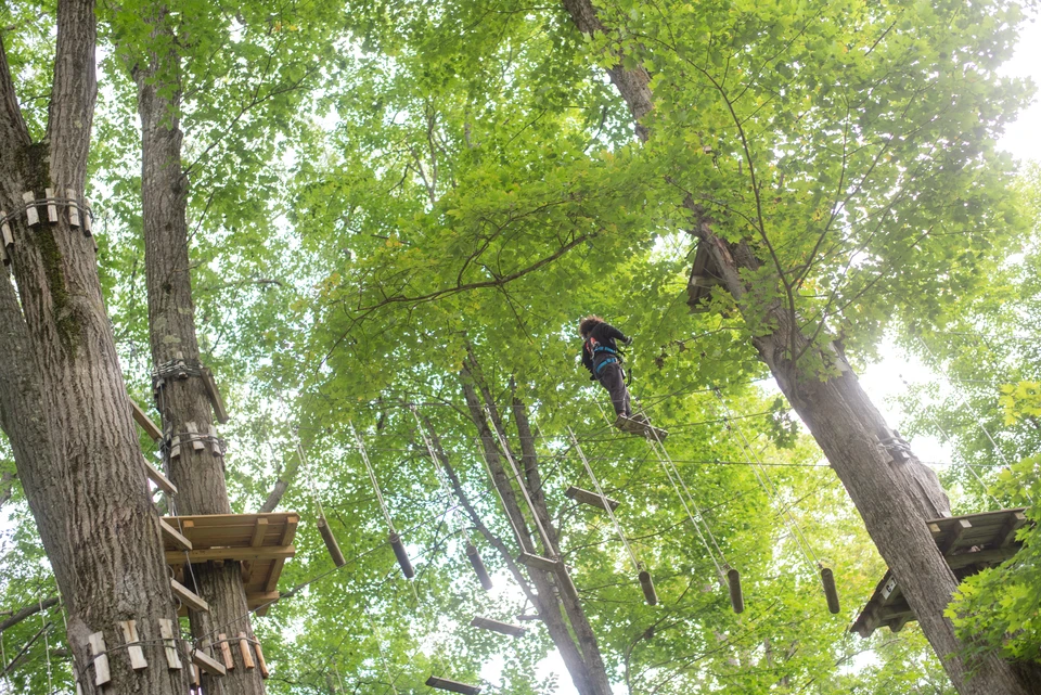 The largest in New York State and 3rd largest in the US, Sky High Aerial Park is a series of platforms, obstacles, bridges and ziplines built in a 5 acre section of the woods and the challenge is to navigate through all the platforms of a course.